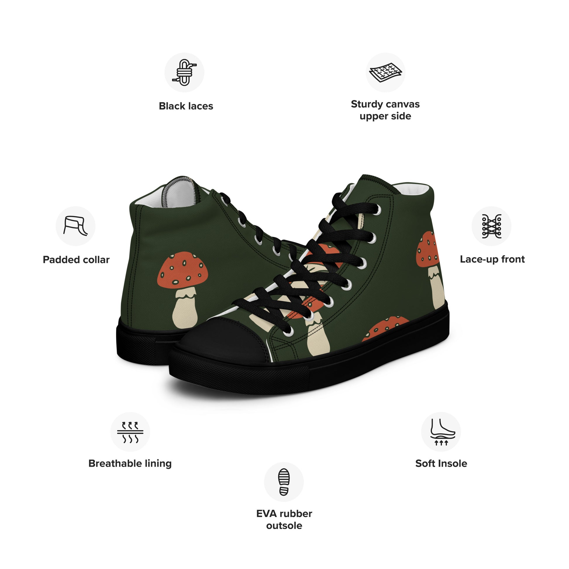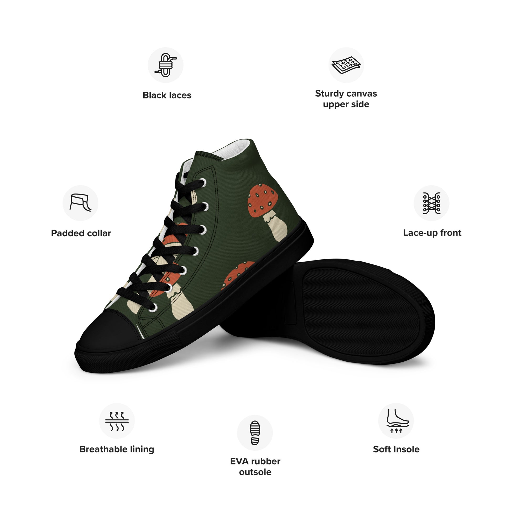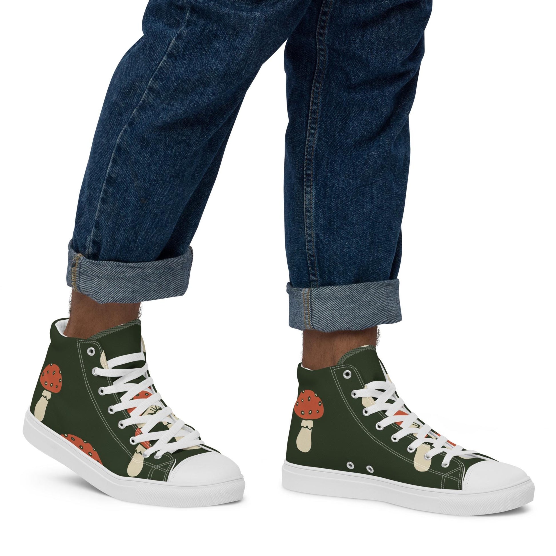 Baskets montantes en toile homme - Vert, imprimé – À lacets, légères et confortables – Minimaliste