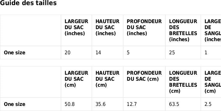 - Anses longues : porté épaule confortable.