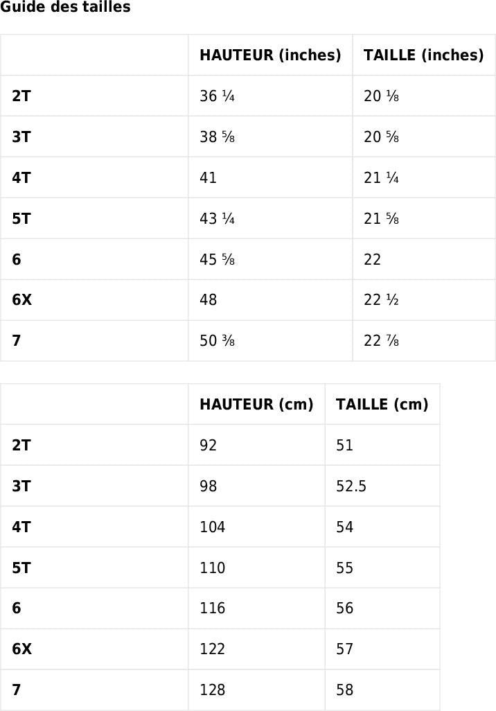 - Tailles Disponibles : De 3 mois à 6 ans.