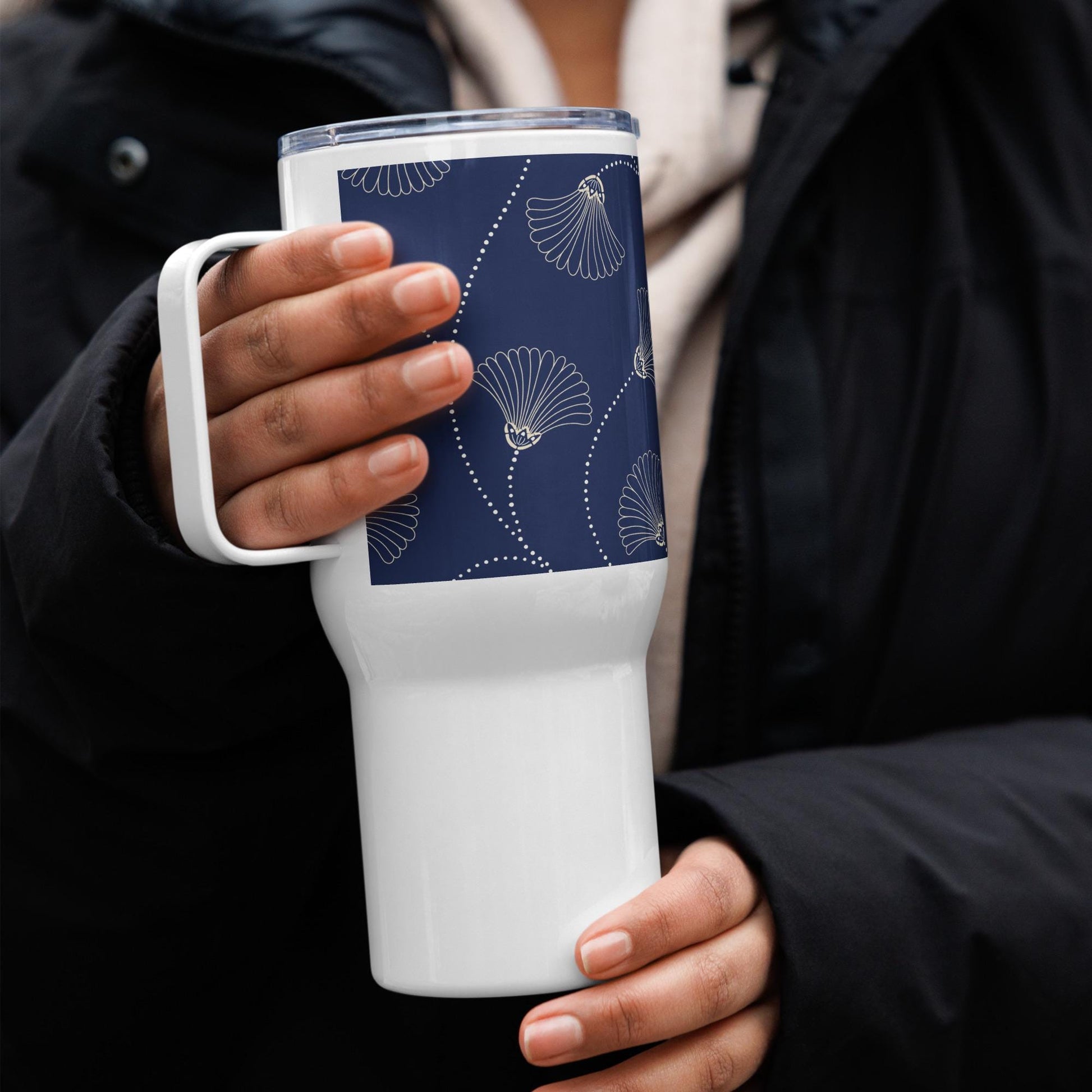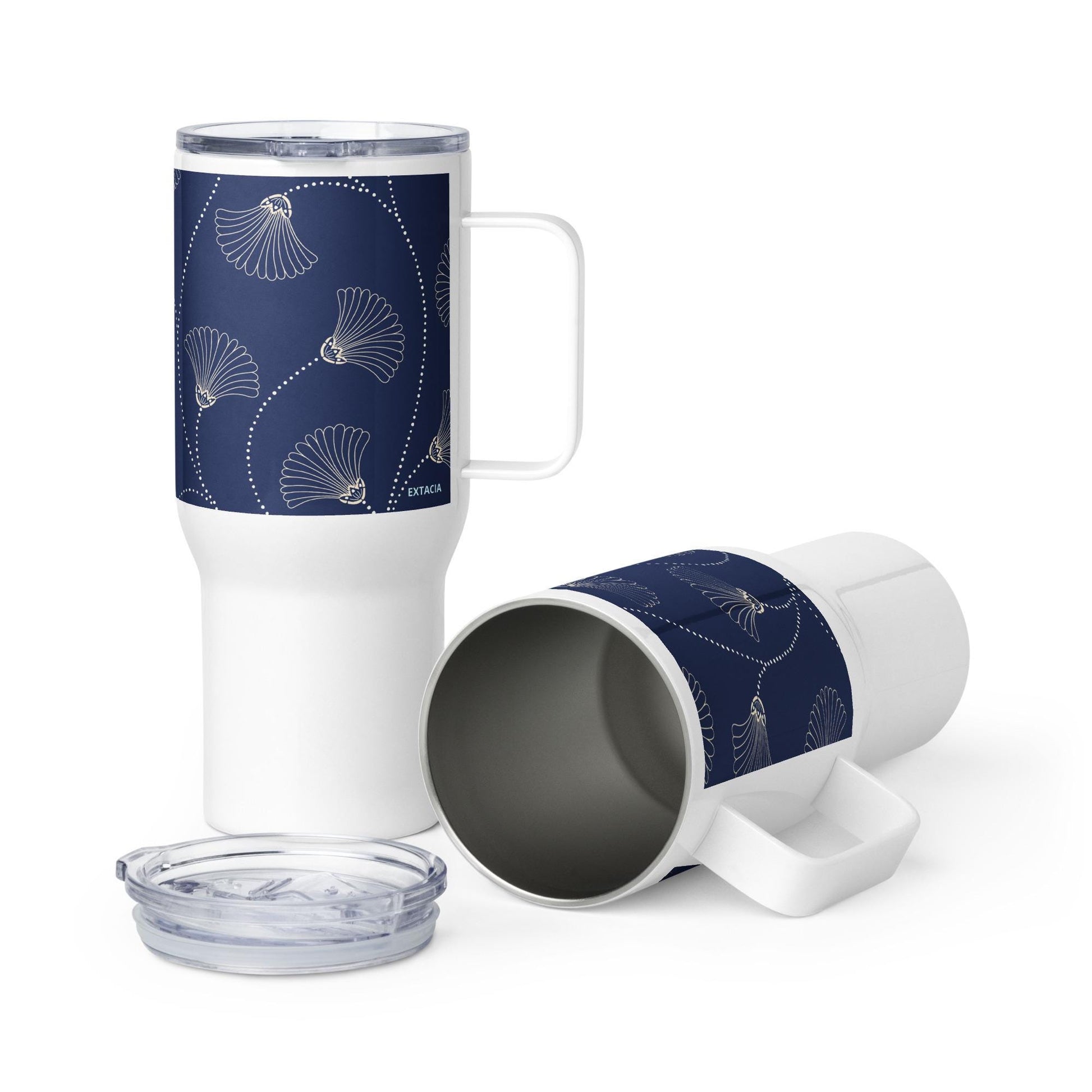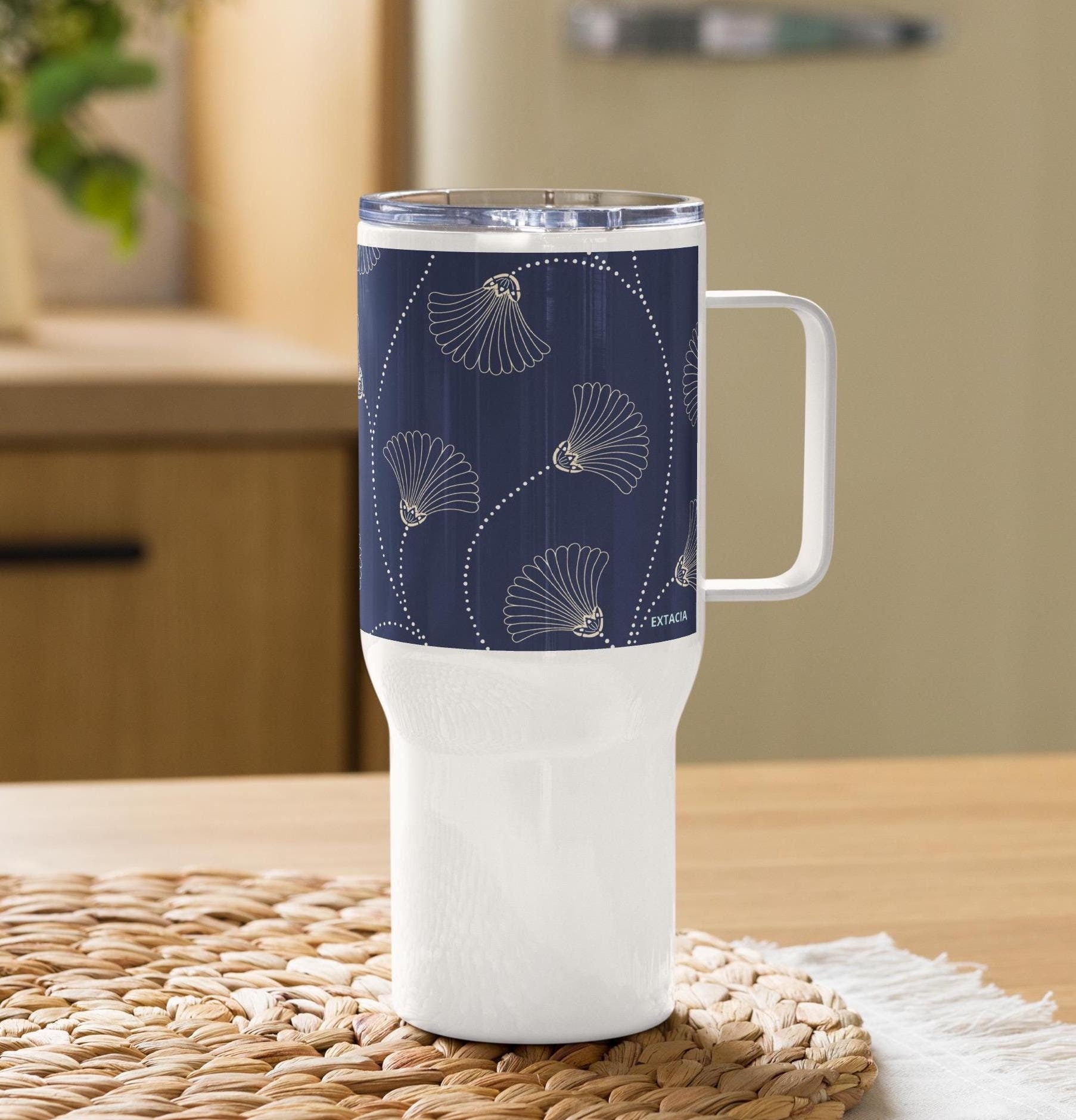 Mug Isotherme Inox - Mug de Voyage Isotherme en Acier Inoxydable avec Anse – Design Florale - THERMOS, gobelet - Durable, LĂ©ger, Étanche