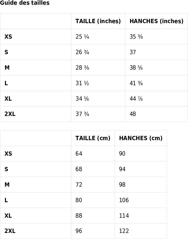 Taille de pantalon unisexe