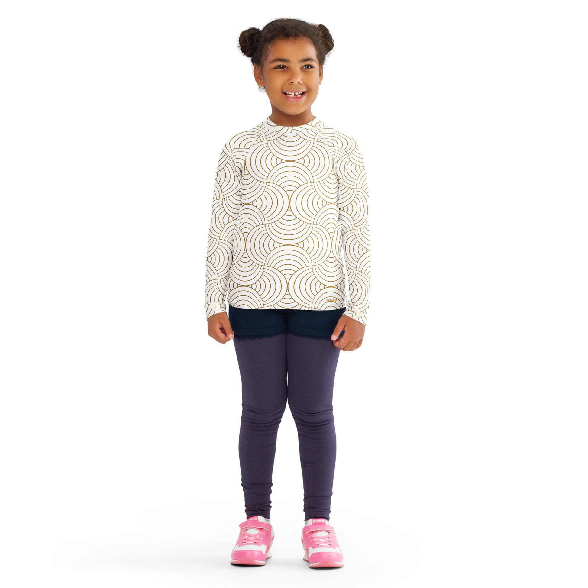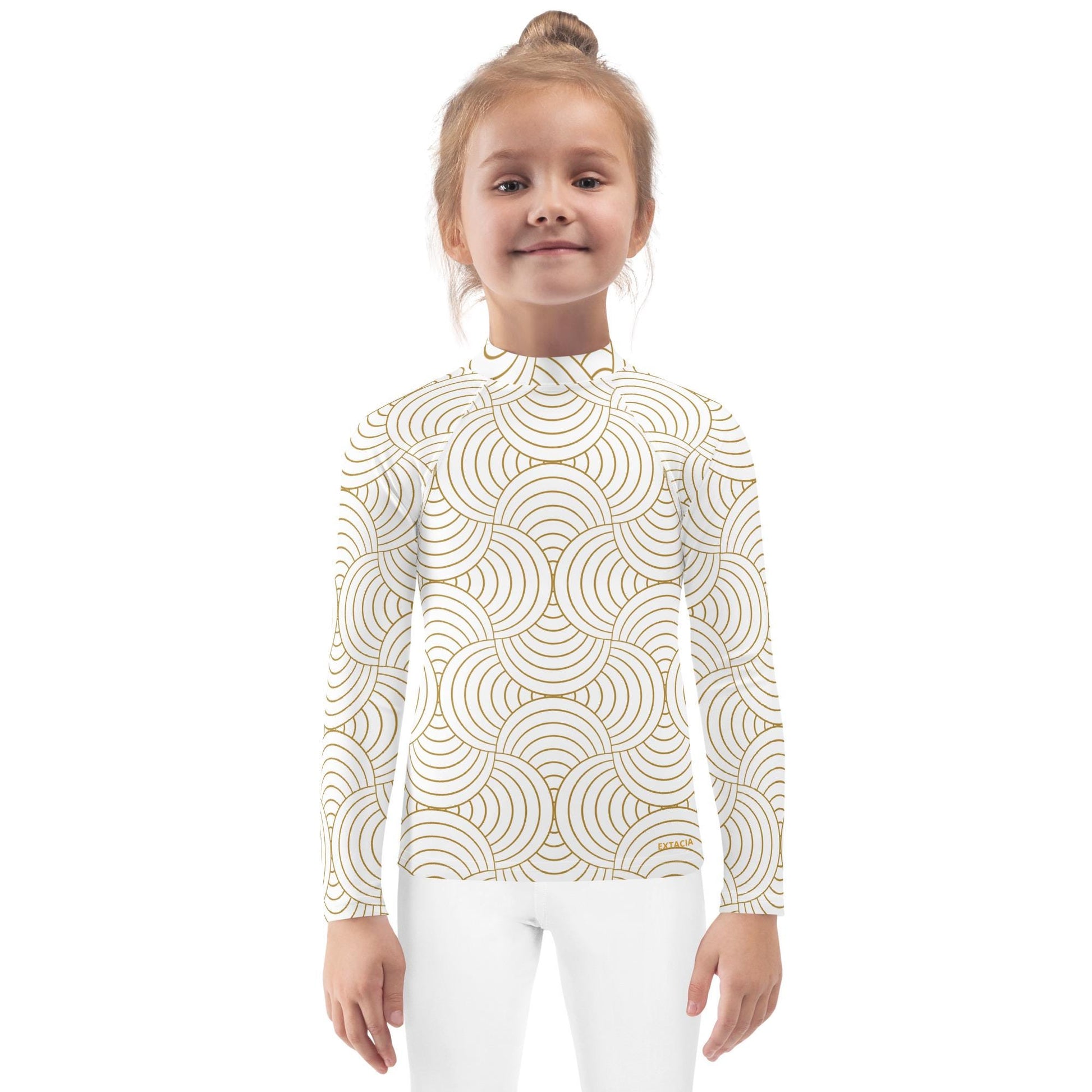 Rash guard pour petite fille – Blanc & Or – Compression légère, séchage rapide – Graphique
